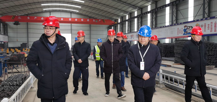 圖為高學(xué)華副主任(左一)檢查鋼筋加工廠