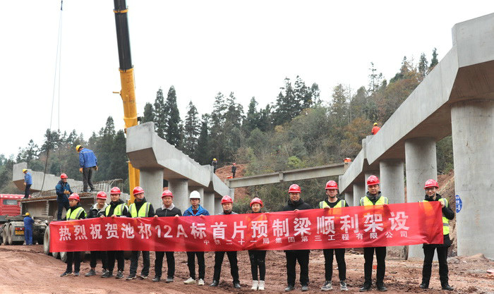 圖為首片梁架設(shè)現(xiàn)場(chǎng) 據(jù)悉,該橋自今年2月份復(fù)工復(fù)產(chǎn)以來(lái),項(xiàng)目部在施工初期克服因疫情導(dǎo)致人員、機(jī)械、材料緊缺的影響,及早部署,并主動(dòng)與當(dāng)?shù)卣畬?duì)接做好征地拆遷工作,提前謀劃,全力搶跑,積極落實(shí)疫情防控措施,一手抓防控,一手抓施工,迅速組織人員隊(duì)伍進(jìn)場(chǎng),優(yōu)化施工組織、合理配置資源,在穩(wěn)步實(shí)現(xiàn)復(fù)工復(fù)產(chǎn)后、施工步伐不斷加快。施工過(guò)程中該橋與地方鄉(xiāng)道交叉重疊,一邊確保暢通,一面注重環(huán)境保護(hù),保證施工通行兩不誤。樁基施工中,強(qiáng)化安全質(zhì)量措施落實(shí)落地,完善安全質(zhì)量技術(shù)交底,技術(shù)人員跟班監(jiān)督,為樁基施工提供可靠技術(shù)支撐。
