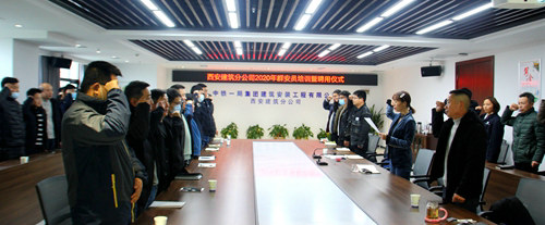 培訓(xùn)結(jié)束后,西安建筑分公司安全質(zhì)量環(huán)保部部長(zhǎng)帶領(lǐng)全體人員進(jìn)行了安全宣誓并頒發(fā)了群安員臂章。(李梅)