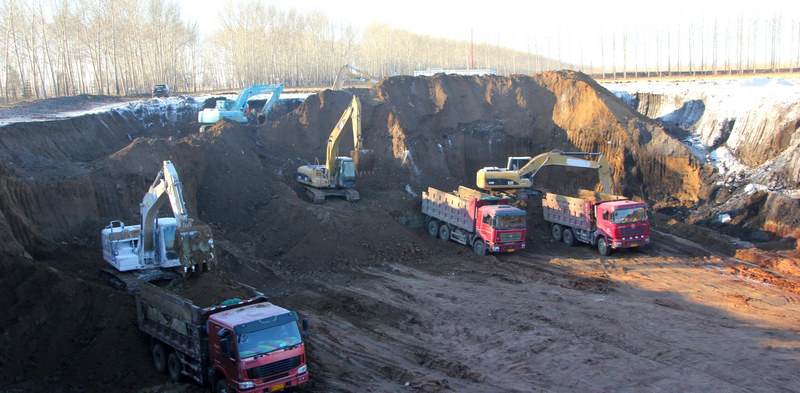 為鋪設(shè)架梁通道提供土源保障的先鋒取土場(chǎng)一片大干快上的施工景象,七臺(tái)挖掘機(jī)巨臂高擎抓斗左右翻轉(zhuǎn),裝車的、積土的,緊張有序忙而不亂。鏟車端起拌土用的白石灰一路行進(jìn)塵土飛揚(yáng),泛起的白色濃霧沖天而起鋪天蓋地。“在這種艱苦的環(huán)境下,還要應(yīng)對(duì)寒冷天氣的侵襲,大家全然不顧干勁十足,晝夜兼程積土不停。我們即要保證架梁通道用土的需要,也要為明年工程復(fù)工奠定基礎(chǔ)”項(xiàng)目第一副經(jīng)理關(guān)宏巖的介紹透露出守土有責(zé)的擔(dān)當(dāng)和敢于勝利的信念令人感動(dòng)。