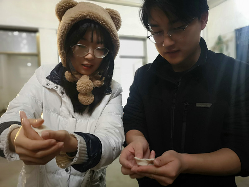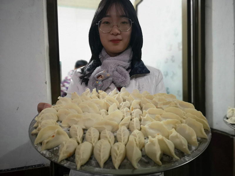 包餃子時最熱鬧,大家一邊包餃子,一邊互相交流著經驗,“餡兒不能太多,也不能太少,皮兒一定要捏緊...”