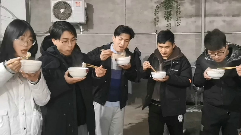 大家端著一碗碗熱氣騰騰的餃子,吃的津津有味,“果然還是自己包的餃子香”,新入職的員工王園朋邊吃邊說,逗得大家哄堂大笑。