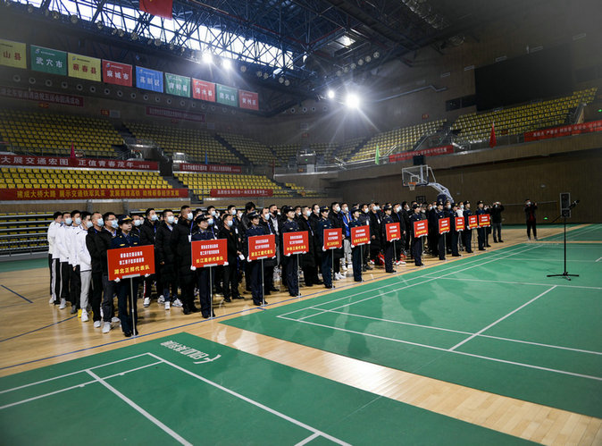 蘄春縣境內(nèi)參建交通基礎(chǔ)設(shè)施企業(yè)各代表隊在開幕式亮相