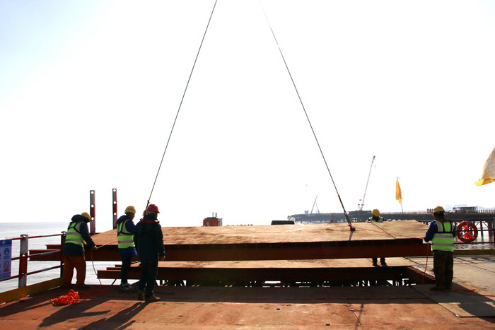 該棧橋施工,克服了上半年疫情、海上大風(fēng)大浪和海下復(fù)雜地質(zhì)帶來的困難,成功跨越海底天然氣管道等17條管線,12月4日安全下穿全長(zhǎng)21000多米的寧波至舟山金塘大橋,贏得了水下水上施工主動(dòng)權(quán)。