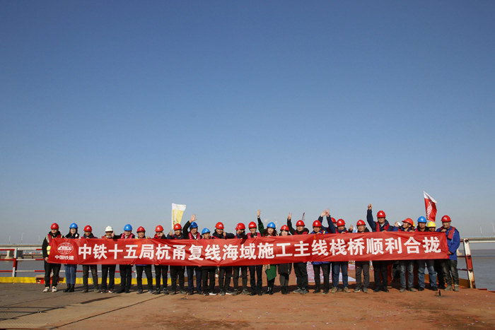 中國(guó)鐵路工程建設(shè)網(wǎng)訊(特約通訊員呂奎元 通訊員王志琴)1月1日上午10時(shí),隨著履帶吊將一塊4米長(zhǎng)1米寬的鋼面板平穩(wěn)地落在貝雷梁上,由此宣布,中鐵十五局集團(tuán)公司承建的杭甬復(fù)線寧波一期 S3標(biāo)濱海高架、濱?;ネêI现鳁蝽樌蠑n。