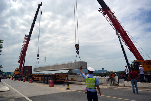 為順利完成鹽灶大橋架梁施工,項(xiàng)目部多措并舉,始終堅(jiān)持安全第一、優(yōu)質(zhì)高效的原則,確保架梁施工順利進(jìn)行。一是多次優(yōu)化施工組織方案,統(tǒng)籌規(guī)劃,詳細(xì)制定施工計(jì)劃,責(zé)任到人;二是施工現(xiàn)場連續(xù)作業(yè),確保架梁按時(shí)完成;三是為確保人、車通行安全,項(xiàng)目部與交警協(xié)商,由交警在現(xiàn)場進(jìn)行交通疏導(dǎo)。