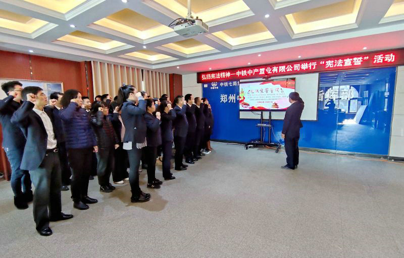 “我宣誓:忠于中華人民共和國憲法,維護(hù)憲法權(quán)威……”,12月4日上午,在第七個(gè)國家憲法日當(dāng)天,公司法律合規(guī)部組織鄭州地區(qū)全體職工在鄭州中央商務(wù)區(qū)301會(huì)議室舉行莊嚴(yán)的憲法宣誓儀式。儀式上,公司總會(huì)計(jì)師兼工會(huì)主席熊傳榮領(lǐng)誓,全體職工整齊排列,右手舉拳,跟誦誓詞。誓詞誦讀完畢后,全體宣誓人高聲報(bào)出自己的姓名。