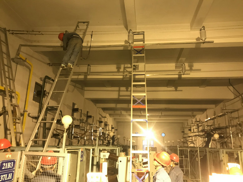 株洲北牽引變電所改造是分階段進(jìn)行的,2020年11月17日完成二臺(tái)牽引變壓器更換。2020年12月4日完成株洲北牽引變電所最后一次方案對(duì)接會(huì),會(huì)議要求我項(xiàng)目部搶在春運(yùn)前完成改造任務(wù),為春運(yùn)保駕護(hù)航。本次高壓室改造是采用新建移動(dòng)高壓室代替既有高壓室,既有高壓室“四進(jìn)八出”,移動(dòng)高壓室采用17條高壓電纜(包換3條備用電纜)進(jìn)行過(guò)渡,與既有高壓室共用操作和保護(hù)回路。高壓室改造前先對(duì)移動(dòng)高壓室受電沖擊,試運(yùn)行24h正常后,于2021年1月12日正式開(kāi)始高壓室改造,經(jīng)一系列倒閘操作后,17:30既有高壓室退出運(yùn)行,高壓室改造內(nèi)容主要有單母排改為雙母排共更換512米、高壓斷路器16臺(tái)、支柱式絕緣子150組,穿墻套管更換12支,所有網(wǎng)柵噴漆,室壓室內(nèi)墻面粉刷等。既有高壓室改造工序多、施工難度大、交叉施工干擾多,項(xiàng)目領(lǐng)導(dǎo)小組審核制定安全可靠的日施工方案,精心組織精兵強(qiáng)將上場(chǎng),投入施工人員30多人,分成9個(gè)小組有條不紊進(jìn)行每道工序改造,每道工序合格后再進(jìn)行下道工序。為確保株洲樞紐行車(chē)安全,降低停電時(shí)間過(guò)長(zhǎng)的風(fēng)險(xiǎn),盡量縮短高壓室改造時(shí)間,京廣項(xiàng)目作業(yè)人員挑燈夜戰(zhàn),不畏寒冷饑餓,項(xiàng)目班子成員每日現(xiàn)場(chǎng)安全盯控,公司專(zhuān)家親自對(duì)技術(shù)、安全、質(zhì)量把關(guān),歷經(jīng)100小時(shí)晝夜連續(xù)作業(yè),按規(guī)定的電氣試驗(yàn)后,所內(nèi)設(shè)備參數(shù)一切正常,凌晨1點(diǎn)12分高壓室成功受電,比原計(jì)劃提前2天完成任務(wù)。株洲北牽引變電所改造圓滿(mǎn)完成,展現(xiàn)了武電人的中鐵速度,展現(xiàn)了央企當(dāng)擔(dān)。