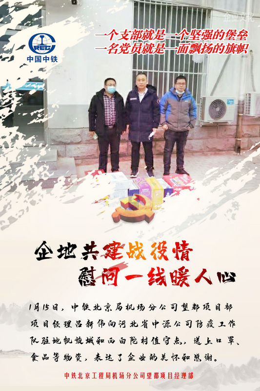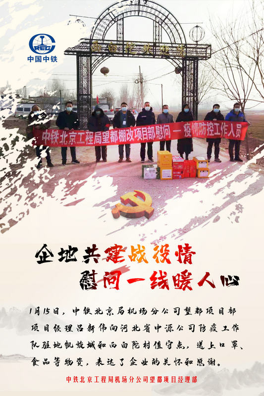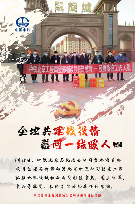 1月15日,中鐵北京局機(jī)場(chǎng)分公司望都項(xiàng)目部項(xiàng)目經(jīng)理呂新偉帶著企業(yè)的關(guān)懷和感謝,向河北省中源公司防疫工作隊(duì)駐地凱旋城和西白陀村值守點(diǎn),送上口罩、食品等物資。呂新偉表示,中鐵北京局望都棚改項(xiàng)目部一定會(huì)按照各項(xiàng)防疫要求,加強(qiáng)與當(dāng)?shù)匾咔榉揽夭块T溝通,做到聯(lián)防聯(lián)控,全力支持疫情防控工作,與社區(qū)一起,堅(jiān)決打贏疫情防控阻擊戰(zhàn)。