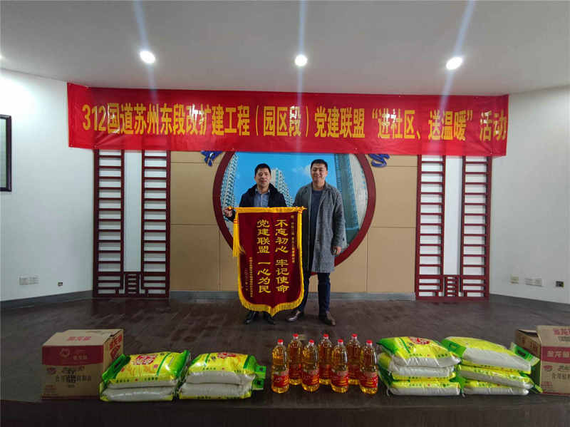 蔡世發(fā)一行人員走訪看望了社區(qū)的困難老黨員,給他們送上米、油等慰問品,并挨個詢問了他們的家庭近況,日常生活中存在的困難,真誠鼓勵他們多給項(xiàng)目部提提建議,以便幫助項(xiàng)目部維護(hù)好施工生產(chǎn)與地方居民之間的關(guān)系。社區(qū)困難黨員們對慰問領(lǐng)導(dǎo)表示了感謝,并理解項(xiàng)目部在維護(hù)施工生產(chǎn)與居民和諧關(guān)系中的各種困難,并表示以后將會繼續(xù)支持312國道項(xiàng)目施工生產(chǎn)的各項(xiàng)工作,助力312國道項(xiàng)目早日通車。最后,社區(qū)給項(xiàng)目部送上了錦旗,以感謝項(xiàng)目部對社區(qū)的貼心關(guān)照。