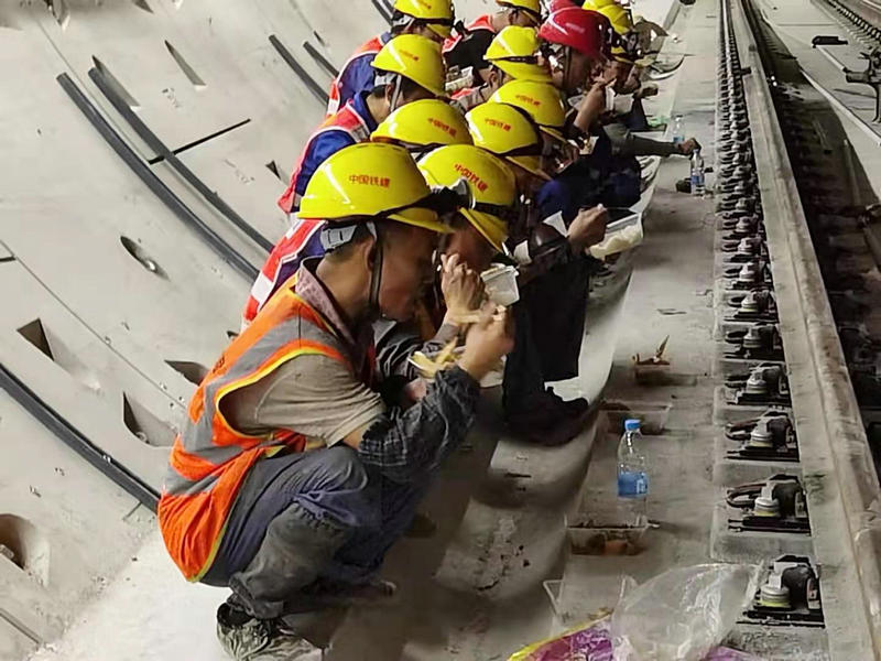 為了確保廣州地鐵十八號線按期開通,承擔(dān)全線軌道施工的五分部四工區(qū)900多名管理人員和2000多名施工人員都放棄了春節(jié)休假,堅持施工。眼看著工期越來越緊,為了節(jié)省時間趕進(jìn)度,20多個施工作業(yè)面的工人們不僅春節(jié)不回家,還主動要求每天中午把飯送到工地吃。