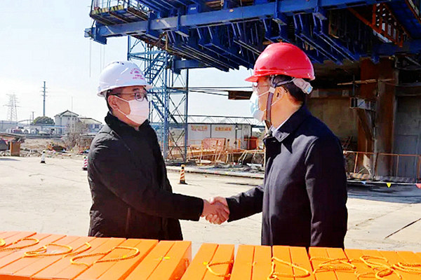 包鳴一行來到南沿江城際鐵路跨錫澄運河連續(xù)梁施工現(xiàn)場,了解項目推進(jìn)情況,檢查工地防疫措施,代表市委、市政府向廣大堅守在工作崗位的建設(shè)者們表示慰問,感謝他們加班加點堅守崗位,并送上新春禮包,向建設(shè)者們致以節(jié)日的祝福。