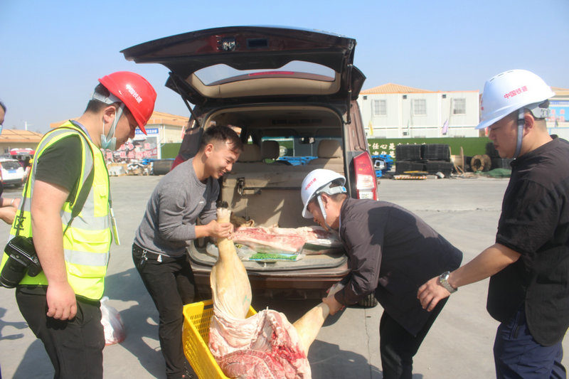 分部綜合辦公室主任張鑫(右1)給工區(qū)送春節(jié)慰問品