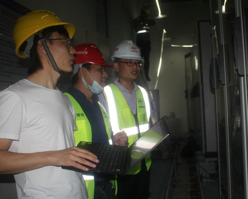 五工區(qū)副經(jīng)理、質量總監(jiān)李毅(左2)在番禺廣場站機房檢查設備