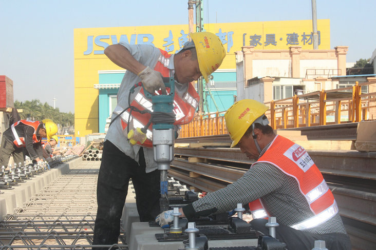 在施工中,分部與所屬各工區(qū)為防止施工人員節(jié)日在工地上精神分散,麻痹大意,堅持班前教育、領(lǐng)導(dǎo)干部帶班、值班、巡查制度,對施工細致安排,精心組織,嚴(yán)格管控,使施工現(xiàn)場呈現(xiàn)出有條不紊,安全高效,熱火朝天的景象,擔(dān)負十八號線軌道工程施工四工區(qū),3000多名施工人員加班加點,日夜奮戰(zhàn),每天鋪軌1公里,焊軌2.1公里速度向前推進,2月16日橫番3號中間風(fēng)井-番禺廣場站-隴枕停車場提前短軌貫通。擔(dān)負二十二號線電務(wù)工程和番禺廣場站機電施工五工區(qū),600多名施工人員爭分奪秒,搶趕進度,超額完成當(dāng)天施工計劃。擔(dān)負隴枕停車場施工三工區(qū),節(jié)日期間一鼓作氣,善始善終,精益求精,抓好收尾工程配套完善施工,為“三權(quán)移交”打好基礎(chǔ)。在分部和所屬各工區(qū)上下的努力下,實現(xiàn)了春節(jié)施工不停歇,保持施工大干態(tài)勢;施工不松勁,保持高昂士氣;施工不減產(chǎn),保持施工計劃如期完成“三不三保”目標(biāo)。