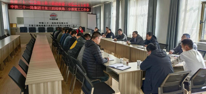 2月21日,中鐵二十一局四公司蘭張三四線鐵路項目部召開以“防疫情、搶工期、趕進度、保目標”為主題的復(fù)工工作會議,公司副總經(jīng)理、項目經(jīng)理趙平華出席會議,項目部全體管理人員參會。