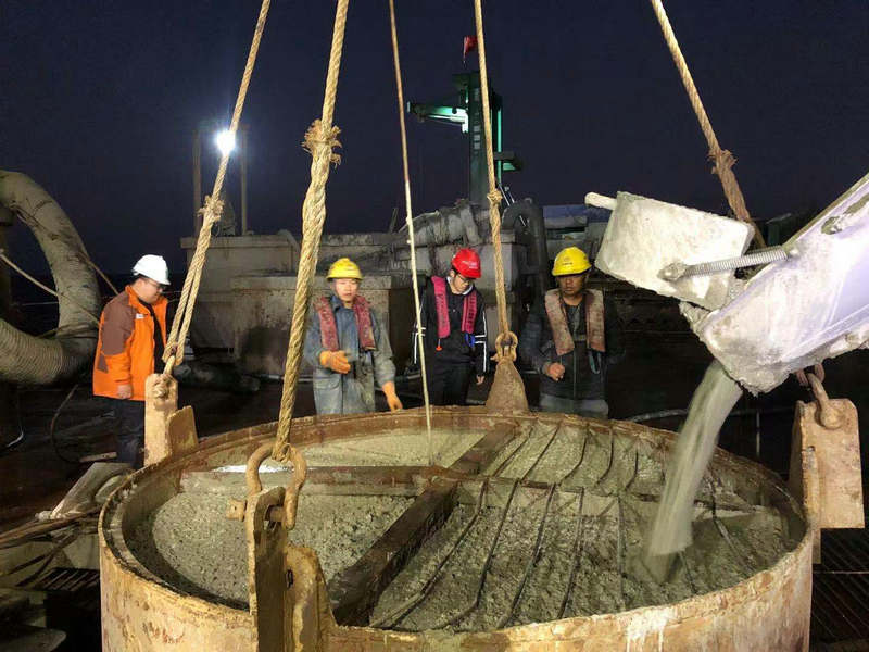 在漆黑的夜色中,有一群人在熒光燈下鏖戰(zhàn)。每當夜幕降臨,萬家燈火,人們飯后圍在電視機前觀看精彩的電視節(jié)目,家長里短,談天說地,開心快樂。夜深人靜了,洗個澡,躺在被窩里美美地睡覺,消除疲勞,恢復體力,儲備充沛的精力迎接明天的工作??墒沁@樣的時刻,在中鐵十五局集團杭甬復線濱海高架和濱?;ネüさ責艋鹜?,亮如白天,燈光將鋼棧橋、作業(yè)平臺、作業(yè)工人照的分外亮堂。數百名員工正在緊張有序地架設棧橋、打樁、下鋼筋籠、灌注混凝土、焊接鋼管,他們不畏嚴寒,不懼酷熱和蚊叮蟲咬,以頑強的毅力戰(zhàn)勝困倦和一切風險,全身心地在各自的崗位上忙碌,天天如此、月月如此,不敢有絲毫懈怠,困了累了也要堅持將一個班上下來。有的為了避免犯困走神,干活出差錯,打起精神,精力充沛地干活,身上裝著清涼油,隔兩三個小時在太陽穴、兩鬢及鼻孔處涂一層清涼油。筆者采訪一位工人時,他說凌晨三四點最困,抹上清涼油一下就有精神了。他們是一群特別能吃苦的人,為項目早日通車貢獻著自己的智慧、汗水和力量。