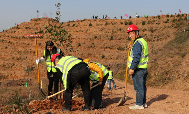 圖為員工植樹時的情景