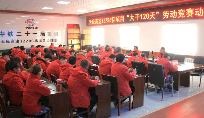 本網(wǎng)甘肅天水3月21日訊(通訊員 彭英 周嘉豪 記者 尹登明)3月20日,根據(jù)施工生產形勢和項目管理需要,中鐵二十一局天莊高速TZZB6標項目掀起了大干“120天”,確保完成“2.25億”目標任務的勞動競賽動員大會,按下了施工大干的啟動鍵,標志著天莊項目各項工作全面展開,進入持續(xù)攻堅階段。項目部全體、工區(qū)經(jīng)理及總工、拌合站、測量班、試驗室及勞務隊負責人共計50余人參加了本次會議。