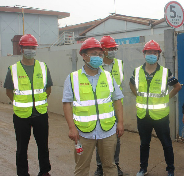 黨支部書記胡春(左2)總工程師明月月(右1)安全總監(jiān)田進(jìn)(左1)在現(xiàn)場檢查安全質(zhì)量管理工作情況