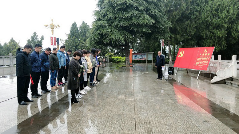時屆清明祭先烈,翠柏凝春慰英魂??|縷細雨,訴不盡對革命先烈的無限深情;綿綿柳絮,道不盡對烈士英魂的無盡哀思。毛毛細雨中,烈士陵園松柏蒼翠,草木蔥蘢,巍峨聳立的革命烈士紀念碑顯得格外莊嚴肅穆。上午11時許,祭掃活動正式開始。首先全體人員向紀念碑獻上花籃,面向紀念碑集體唱響國歌并默哀一分鐘。支部書記帶頭宣誓,讓每位黨員重溫了入黨誓詞,帶領全體人員集體瞻仰了革命烈士紀念碑,每位同志向烈士墻獻上菊花,表達深切的哀思和崇高的敬意。隨后,全體人員參觀了革命烈士紀念館,讓全體人員接受了一次深刻的黨性教育。