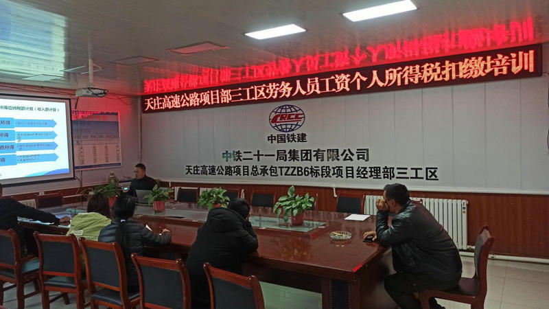 為了有效提高勞務(wù)負(fù)責(zé)人對農(nóng)民工工資單編制個稅扣繳的準(zhǔn)確性,4月1日,中鐵二十一局四公司天莊高速公路項(xiàng)目部對勞務(wù)工負(fù)責(zé)人進(jìn)行了民工工資個人所得稅扣繳培訓(xùn)。