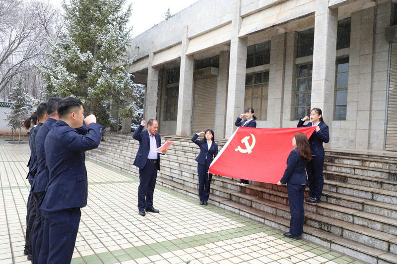西寧市中國工農(nóng)紅軍西路軍紀念陵園由烈士群雕塑像、紀念碑、烈士墓、中國工農(nóng)紅軍西路軍紀念館等組成。黨支部書記帶領(lǐng)黨員干部來到紀念碑前,為安葬在此處的840位紅軍烈士獻上鮮花,表達哀思。在西路軍紀念館前,面對鮮紅的黨旗,全體黨員莊重的舉起右手重溫了入黨誓詞。隨后,大家到紀念館展廳內(nèi)進行參觀,紀念館內(nèi)珍藏的寶貴史料,再現(xiàn)了中國工農(nóng)紅軍西路軍堅貞不屈的革命英雄主義精神,譜寫了一曲中國革命歷史的壯麗篇章。