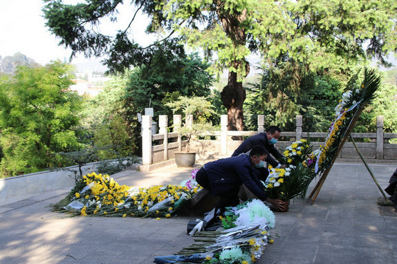 到達烈士陵園后,職工們稍作整理,在莊嚴(yán)的氛圍中有條不紊來到烈士墓碑前,看著王復(fù)生、王德三、張舫、劉平楷等烈士的墓碑,聆聽書記講解烈士們的英雄事跡,心中感慨萬千,但此時卻無聲勝有聲,惟有用最傳統(tǒng)的方式:注目、默哀,向犧牲的烈士表達無限崇高敬意和哀思,并懷著沉重悼念的心情為烈士們獻上鮮花,向烈士們致以崇高的敬意。