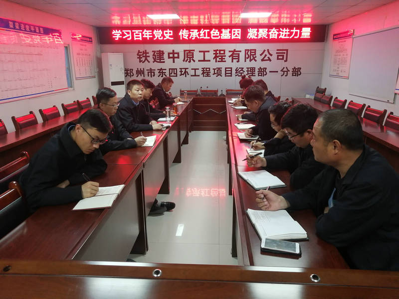 二十一局一公司鄭州市東四環(huán)項(xiàng)目黨支部在推進(jìn)黨史學(xué)習(xí)教育中,結(jié)合項(xiàng)目實(shí)際,積極開展“學(xué)習(xí)百年黨史,傳承紅色基因,凝聚奮進(jìn)力量”系列活動(dòng),通過對(duì)黨史的學(xué)、思、悟,極大地鼓舞了參建成員決勝東四環(huán)6.30通車任務(wù)目標(biāo)的信心和的決心。