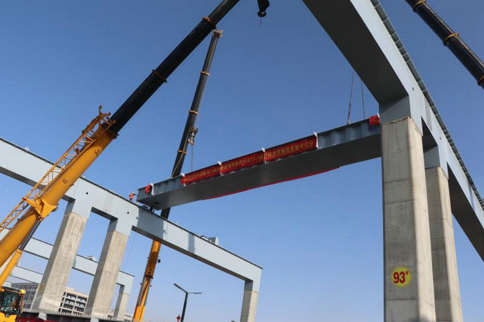 本網(wǎng)甘肅蘭州4月13日訊(通訊員 張東升 馮轉(zhuǎn)紅)4月12日,中鐵二十一局三公司中川機(jī)場T3航站樓連接線T3-4項(xiàng)目首跨鋼箱梁架設(shè)成功,標(biāo)志著該項(xiàng)目取得關(guān)鍵節(jié)點(diǎn)突破,橋梁鋼箱梁架設(shè)工作全面展開,進(jìn)入下一施工階段。