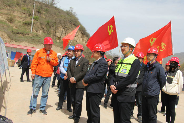 相互探討如何扎實開展黨建工作 活動現(xiàn)場,黨旗飄揚,天莊高速TZZB6標項目總工程師趙強帶領(lǐng)大家通過項目黨建工作開展、各級領(lǐng)導關(guān)懷、管理活動、建家建線、文化建設(shè)、施工建設(shè)、黨史學習情況等展板,對項目作為央企的整體優(yōu)勢有一個充分的認識,趙總還對項目概況及目前的施工情況進行了詳細的講解。