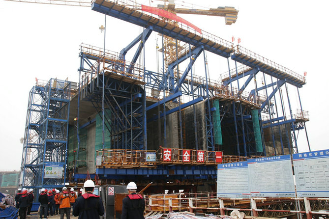 下一步將進行1號塊拼裝模具、綁扎鋼筋、澆注混凝土作業(yè)。