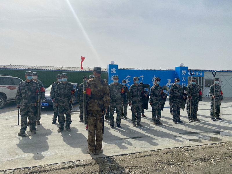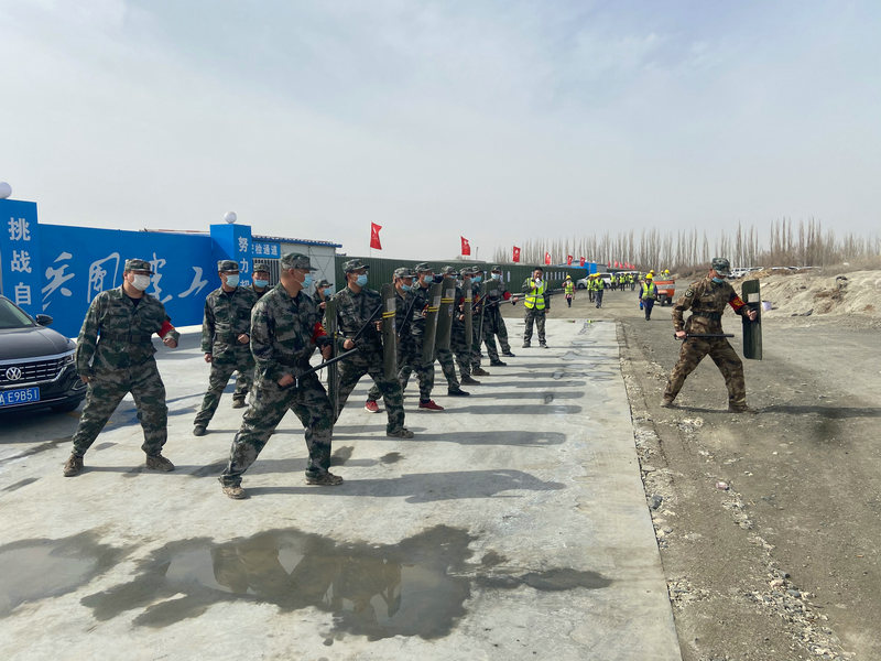 中國鐵路工程網(wǎng)訊(通訊員周玉明、劉建林)4月30日,位于農(nóng)二師鐵門關(guān)市的兵團興新職業(yè)技術(shù)學(xué)院(二期)施工場上,驕陽似火,熱浪襲人,工人們正在揮汗如雨進行緊張的施工任務(wù)。“發(fā)現(xiàn)不明身份人員,企圖對我偷襲!”隨著“敵情”通報傳來,該項目一場應(yīng)急處突演練拉開序幕。