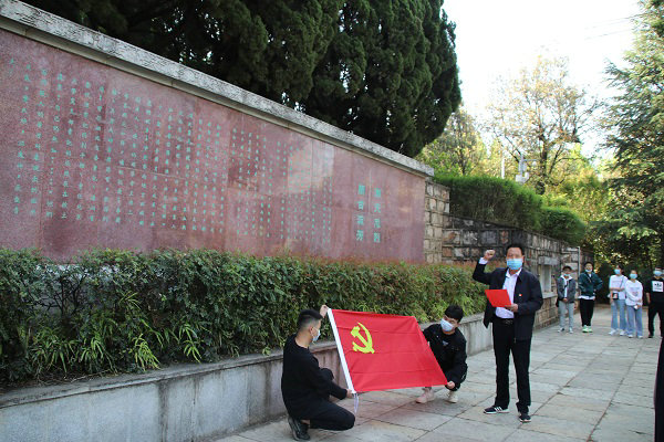 “五一”前夕,福宜項(xiàng)目組織全體黨員同志游覽了黑龍?zhí)读沂苛陥@,一行人滿懷虔誠,抬著鮮花花籃,順著陵園的石階小道曲折而上,來到山坡上一片靜謐的地方。首先映入眼簾額就是馬登云、王德三、吳澄三位烈士的墓碑,墓碑的右上方是烈士們的生平,聆聽講解員講解烈士們的英雄事跡,心中感慨萬千,但此時卻無聲勝有聲。在莊嚴(yán)肅穆的氛圍中,我們排成一排向烈士敬獻(xiàn)花籃,緬懷革命先輩的光輝業(yè)績。所有黨員高舉右手,在先烈墓前一句句重溫入黨誓詞,面對此情此景我總是心潮澎湃、思緒萬千,仿佛烈士們戰(zhàn)斗的場景在我眼前一幕幕閃現(xiàn)。
