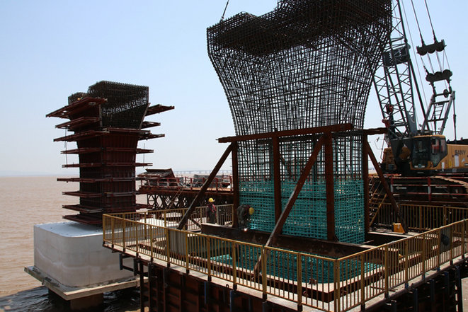 3日上午,項(xiàng)目部接到寧波市防汛防臺(tái)抗旱指揮部辦公室通知:5月3日夜里到4日有中到大雨,局部有暴雨,降雨量20—40毫米,局部50毫米以上,寧波沿海海面有7—9級(jí)偏南大風(fēng),請(qǐng)做好防汛防大風(fēng)準(zhǔn)備。杭甬項(xiàng)目部針對(duì)惡劣天氣對(duì)施工的不利影響,立即啟動(dòng)防汛防大風(fēng)應(yīng)急預(yù)案,組織人員對(duì)S3標(biāo)段部分已安裝好等待立模、灌注的10多個(gè)海上橋墩鋼筋籠進(jìn)行加固,并對(duì)塔吊、履帶吊等大型設(shè)備進(jìn)行了安全防護(hù)。