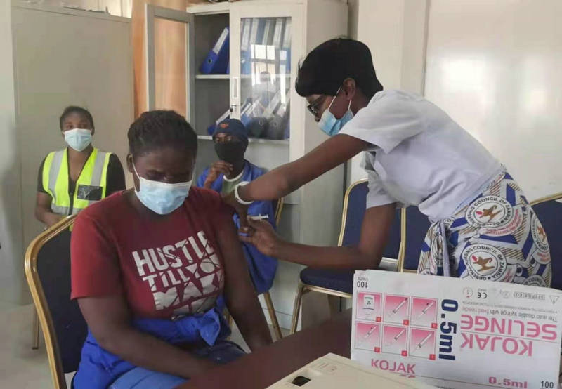 5月7日,經(jīng)過贊比亞地區(qū)和項目部積極與當(dāng)?shù)蒯t(yī)療機構(gòu)的多方溝通協(xié)調(diào),當(dāng)?shù)豂SOKA醫(yī)院派遣醫(yī)護組來到了107項目部,對當(dāng)?shù)貑T工進行新冠疫苗集中接種,至此使得本項目部絕大部分人員獲得了對冠性病毒的免疫力,在人群中可逐步建立起免疫屏障,阻斷新冠肺炎流行的可能性。