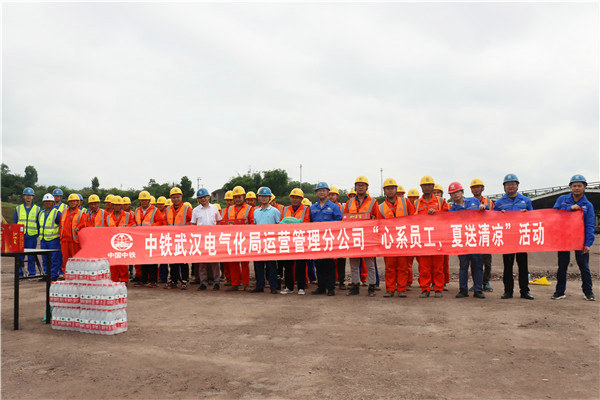 5月14日上午,中鐵武漢電氣化局重慶軌道交通4號(hào)線二期項(xiàng)目部接觸網(wǎng)作業(yè)隊(duì)正在進(jìn)行緊張的施工作業(yè),此時(shí)現(xiàn)場(chǎng)迎來(lái)了一位特殊的客人。分公司黨委副書(shū)記(主持黨委工作)馬良兵同志帶著公司的關(guān)懷和工會(huì)組織的關(guān)愛(ài),為戰(zhàn)斗在重慶軌道交通4號(hào)線上的全體將士“送清涼、送安全、送健康”,給現(xiàn)場(chǎng)的同志們帶去了王老吉、西瓜、藿香正氣水等清涼用品。馬良兵檢查了作業(yè)現(xiàn)場(chǎng)后,又到作業(yè)隊(duì)駐地察看生活條件,對(duì)一線職工的艱辛付出給予了充分的肯定并表示誠(chéng)摯的感謝,同時(shí)叮囑大家在夏季施工期間,要特別注意防暑降溫工作。