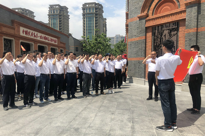 “一大”會(huì)址門前,大家面對黨旗重溫入黨誓詞。“回望源頭,汲取信仰力量,面向未來,更思肩上重任”,黨員們表示要堅(jiān)持初心如磐,使命在肩,在崗位上兢兢業(yè)業(yè),切實(shí)發(fā)揮共產(chǎn)黨員先鋒模范作用。