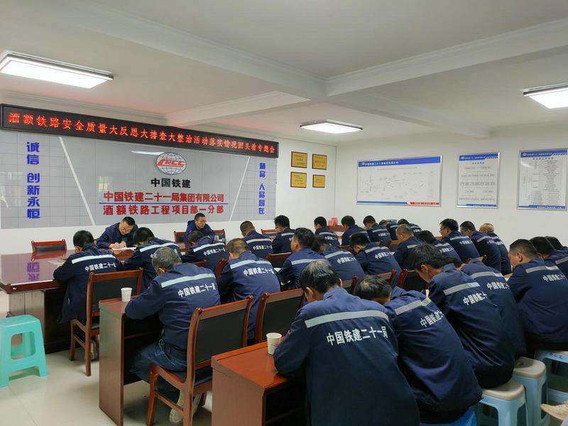 5月19日,中鐵二十一局四公司副總經(jīng)理祁濤到酒額鐵路項目檢查指導工作,結(jié)合在建項目開展安全質(zhì)量大反思、大排查、大整治活動要求,召開項目安全質(zhì)量工作回頭看專題會,項目部全體人員參加會議。