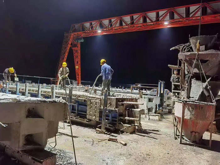 圖為最后一片T梁拆模 在后續(xù)施工中,為加快施工進(jìn)度,把失去的時(shí)間搶回來,完成每個(gè)節(jié)點(diǎn)目標(biāo)任務(wù),參建人員搶抓施工黃金季節(jié),倒排工期,合理制定預(yù)制計(jì)劃,整合優(yōu)化資源配置,陰天小雨不停歇,夜間加班輪班倒,預(yù)制過程中,嚴(yán)格質(zhì)量把控,規(guī)范施工工藝流程,現(xiàn)場(chǎng)技術(shù)人員旁站監(jiān)督指導(dǎo),班子包保人員下沉現(xiàn)場(chǎng),每道工序都有人把守盯控,專人負(fù)責(zé),合理利用存放場(chǎng)地,保證了T梁預(yù)制的質(zhì)量和進(jìn)度,并由過去的3-4片梁。提高到5-6片的節(jié)點(diǎn)目標(biāo),T梁預(yù)制的完成,為后續(xù)施工贏得了時(shí)間,滿足了架設(shè)需求,在歷次業(yè)主監(jiān)理例行檢查中受到了好評(píng)和認(rèn)可。