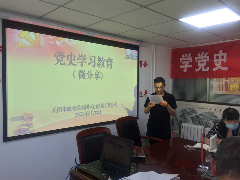 中國鐵路工程建設(shè)網(wǎng)(通訊員周玉明、陳玉玲):“砸碎鐵牢的斧頭和收獲秋耕的鐮刀勃然相會(huì),悠悠長夜下終于熬出了一盞燦爛的燈塔,1921年7月23日,中國共產(chǎn)黨成立了……”5月22日,在兵團(tuán)市政交通集團(tuán)天山建筑工程公司組織的“我學(xué)黨史微分享”活動(dòng)中,政工員同大家分享“紅船精神”,激起了全體黨員的熱情。