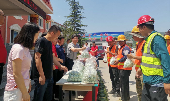 項目部為施工隊精心購置了豬肉、粽子、飲料、咸鴨蛋、西瓜、荷香正氣液等慰問品,將項目部濃濃的關(guān)愛傳遞到每一位一線施工人員的心里,給炎炎夏日的一線建設(shè)者送去了“清涼”。