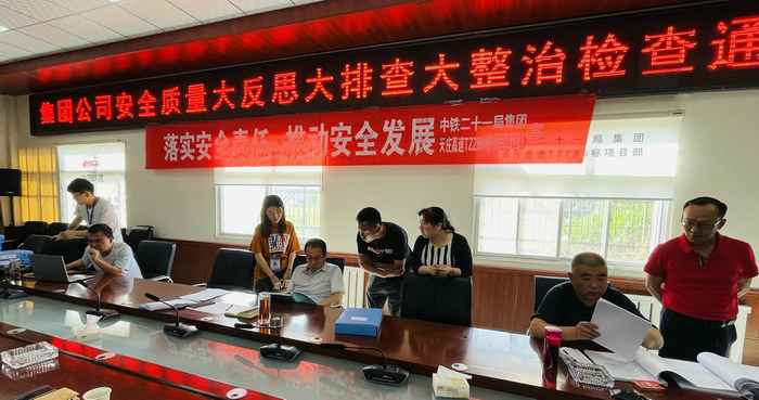 檢查組一行深入施工現(xiàn)場(chǎng),對(duì)項(xiàng)目重點(diǎn)施工部位進(jìn)行了抽查,對(duì)項(xiàng)目部落實(shí)集團(tuán)公司安全質(zhì)量“大反思 大排查 大整治”活動(dòng)情況進(jìn)行了詳細(xì)檢查。6月10日,檢查組在項(xiàng)目部會(huì)議室召開了通報(bào)會(huì)。