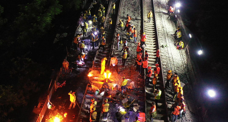湖北黃岡訊6月6日凌晨5時,隨著黃岡西站最后一組1/18型道岔順利接入武岡城際鐵路正線,至此連續(xù)5天320分鐘二級封鎖“天窗”點(diǎn)任務(wù)順利完成,標(biāo)志著中鐵三局線橋公司黃黃項(xiàng)目黃岡西站站改施工圓滿收官。