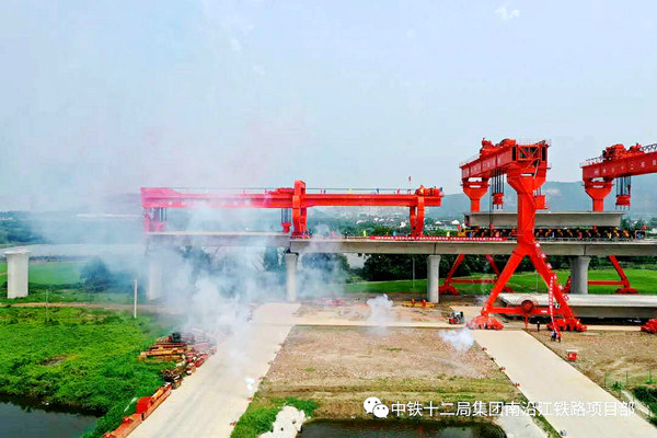 鐵路工程建設(shè)網(wǎng)江蘇江陰訊(特約通訊員 鄭建軍 攝影報(bào)道)據(jù)江蘇省鐵路集團(tuán)副總經(jīng)理錢永祥介紹,南沿江城際鐵路自京滬高鐵南京南站的寧安場(chǎng),途經(jīng)南京江寧區(qū),鎮(zhèn)江句容市,常州金壇區(qū)、武進(jìn)區(qū)和經(jīng)濟(jì)開發(fā)區(qū),無(wú)錫江陰市,蘇州張家港市、常熟和太倉(cāng)等11個(gè)縣市(區(qū)),終至在建的滬通鐵路(上海—南通)太倉(cāng)站。新建正線長(zhǎng)度278.53公里,設(shè)計(jì)時(shí)速為350公里/小時(shí)。全線共設(shè)南京南-句容-金壇-武進(jìn)-江陰-張家港-常熟-太倉(cāng)等8個(gè)車站,并在太倉(cāng)經(jīng)滬通鐵路一期接入上海。項(xiàng)目建設(shè)總工期為4年。近期規(guī)劃開行客車100對(duì)/日,遠(yuǎn)期規(guī)劃開行客車130對(duì)/日,最小行車間隔為3分鐘。為了加快南沿江城際鐵路的建設(shè),中鐵十二局集團(tuán)的參建者在拼搶因疫情耽誤的工期同時(shí),及時(shí)啟動(dòng)了架梁計(jì)劃。這樣,雖然增加架梁難度,但橋上橋下工程可以同時(shí)進(jìn)行,有力的保證了整體工期的實(shí)現(xiàn)。
