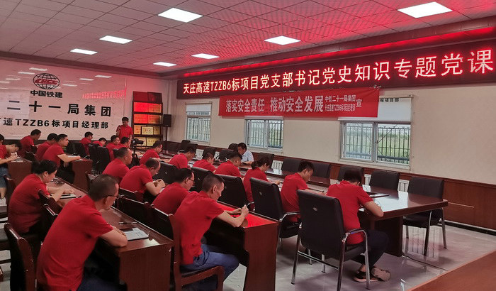 本網(wǎng)甘肅天水6月24日訊(通訊員 彭英 )昨天晚上,按照集團(tuán)公司、公司黨史學(xué)習(xí)教育工作安排,中鐵二十一局天莊高速TZZB6標(biāo)項目黨支部開展了黨史學(xué)習(xí)教育專題黨課,項目副書記錢海為大家講授了題為“學(xué)習(xí)黨史 堅定信念 做合格黨員”的專題黨課。