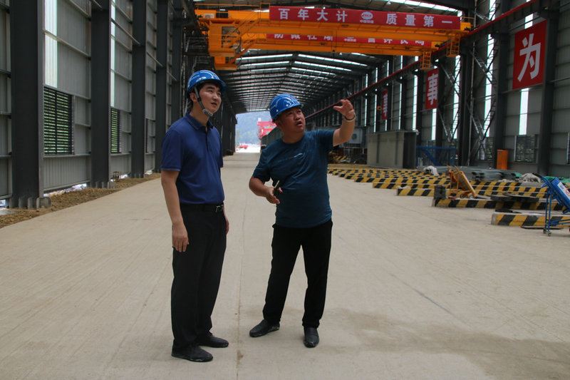 祁婺項(xiàng)目60米π型鋼混梁,為目前國內(nèi)跨度最大,技術(shù)控制嚴(yán)格,施工難度也很大。李蕓就南山路特大橋、鳳山水特大橋π型鋼混梁的制梁及架設(shè)安排,向王小慶作了簡要匯報(bào)。在南山路特大橋第19跨橋尾處,王小慶一行查看了已經(jīng)下線并移動(dòng)至架設(shè)現(xiàn)場的鋼混梁,要求架設(shè)之前必須做一次試吊裝,確保鋼混梁架設(shè)安全萬無一失,要從人員配合、設(shè)備移動(dòng)、技術(shù)支持、風(fēng)險(xiǎn)隱患排除等方面通盤考慮,保證制架梁安全無虞。