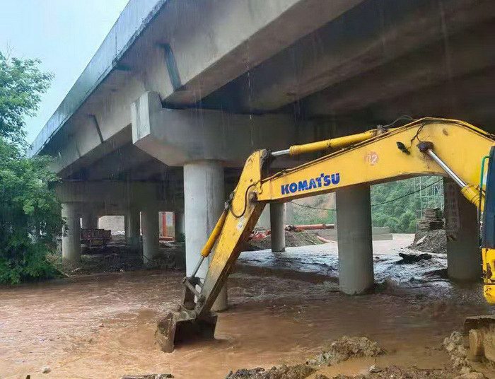 由于洪水迅猛,暴雨導(dǎo)致金字牌河道洪水暴漲,把螺旋管都沖散沖走,過往路段水流湍急,積水嚴(yán)重,為了保障材料不受損失,立即調(diào)配吊車進(jìn)行起吊補(bǔ)救,防洪小組成員在暴雨中指揮,展開搶救和疏通,利用挖掘機(jī)大型機(jī)械對(duì)邊坡進(jìn)行圍填,對(duì)過往路面進(jìn)行排險(xiǎn)和疏通。對(duì)易造成地質(zhì)災(zāi)害的路段進(jìn)行風(fēng)險(xiǎn)隱患排查,及時(shí)采取安全措施并派出值班車輛,值班巡視小組24小時(shí)巡查值班制度,壓實(shí)防洪防汛責(zé)任,細(xì)化防汛措施和責(zé)任分工,加強(qiáng)汛情信息發(fā)布,把損失最大限度降到最低。
