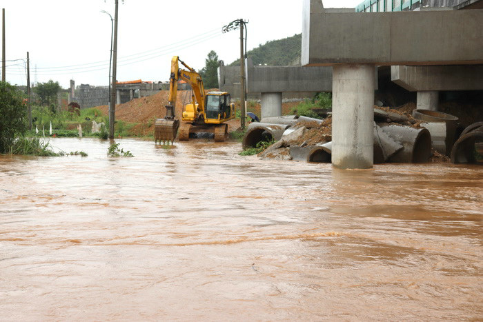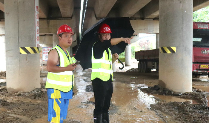 為了全力以赴做好防洪防汛,面對(duì)短短一小時(shí)就達(dá)到100多毫米的強(qiáng)降雨,為保障參建員工生命財(cái)產(chǎn)安全,防洪防汛領(lǐng)導(dǎo)小組堅(jiān)持“生命至上、安全第一”的理念,冒著大雨,按照防洪度汛預(yù)案要求,對(duì)河道進(jìn)行排澇疏浚清淤雜物,采取避災(zāi)措施,迅速轉(zhuǎn)移機(jī)械設(shè)備、物資材料,對(duì)低洼地帶、易澇地帶采取圍堰措施,同時(shí)加強(qiáng)重點(diǎn)部位值班值守,對(duì)邊坡塌方滑坡地帶及時(shí)用挖機(jī)清理,保障道路暢通和出行安全。