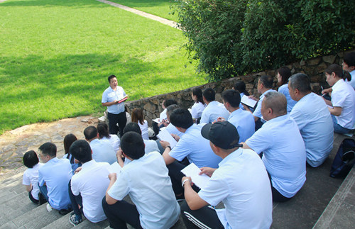 下午,在紀念館的石階上,代表們席地而坐,共同聆聽了由漢中市黨校老師為大家?guī)淼膶n}黨課,栩栩如生地再現(xiàn)了當年的戰(zhàn)斗場景。分公司黨總支書記劉改民以《黨員干部要從黨的百年光輝歷史中堅定初心使命》為題,和大家一起從兩個方面回顧光輝歷史、堅定初心使命,同時號召全體黨員要保持黨員的純潔性、革命性和先進性;要時刻堅定理想信念,要純潔思想道德,改進思想作風;要不斷增加凝聚力、戰(zhàn)斗力,時刻發(fā)揮先進性和模范帶頭作用。黨員代表們紛紛結(jié)合此次踐學,暢談了個人的所思所想所感所悟;結(jié)合分公司2021年生產(chǎn)經(jīng)營總體目標,聯(lián)系自身崗位實際,講了作為一名黨員,在接下來將如何以實際行動來為建黨100周年獻禮。